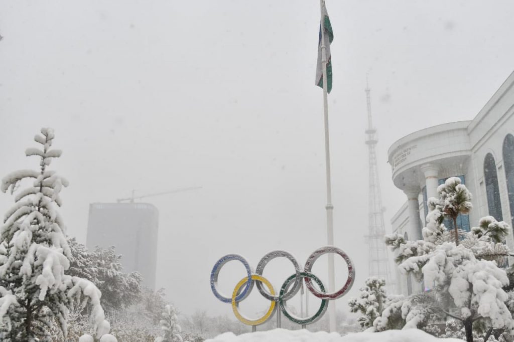 The snow that fell in the capital today especially decorated the building of the NOC of Uzbekistan. The press service of the Committee shares photos that reflect all the beauty of nature!