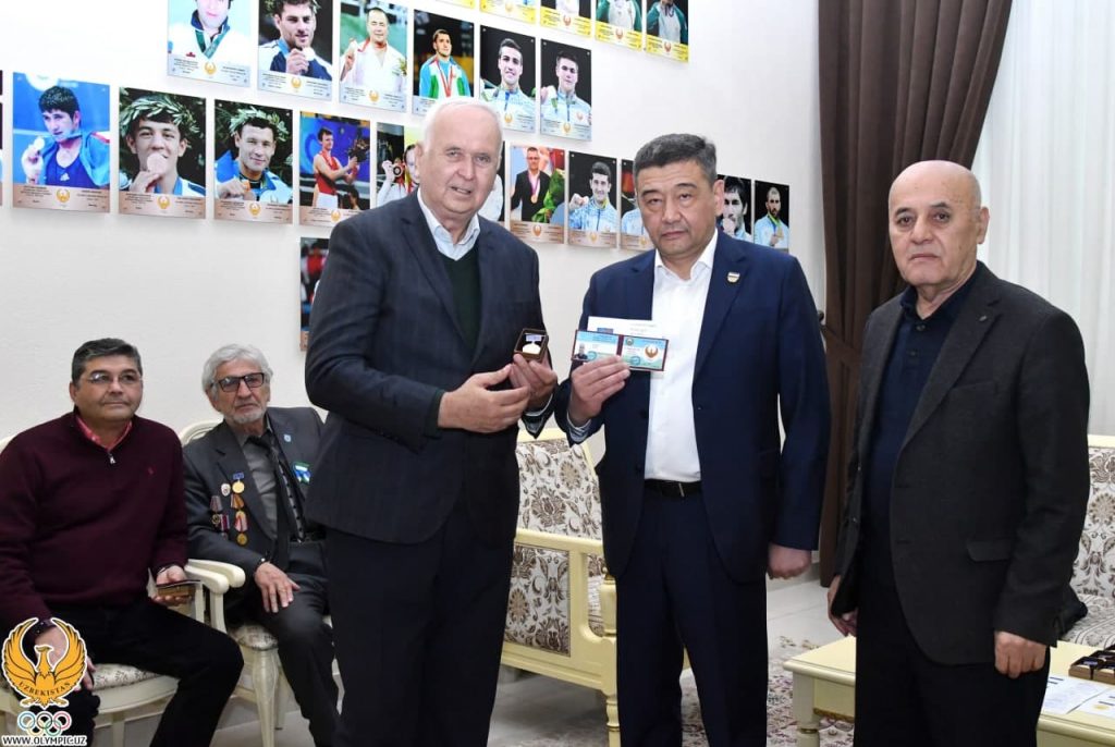 The event was attended by the chairman of the NOC Rustam Shaabdurakhmanov, Chairman of the Council of Veterans of Sports of Uzbekistan Bahodir Mahsitov and a group of veterans. First, Bahodir Mahsitov spoke about the attention and care provided by the President, as well as plans for the future. After that, Vice-President of the United World of Wrestling, Professor Akhrol Ruziev, mentor with rich coaching experience in wrestling Kamil Fatkulin, Olympic water polo champion Erkin Shagaev, as well as 12 dedicated representatives of Uzbek sports were awarded badges “Veteran of sports of Uzbekistan”.