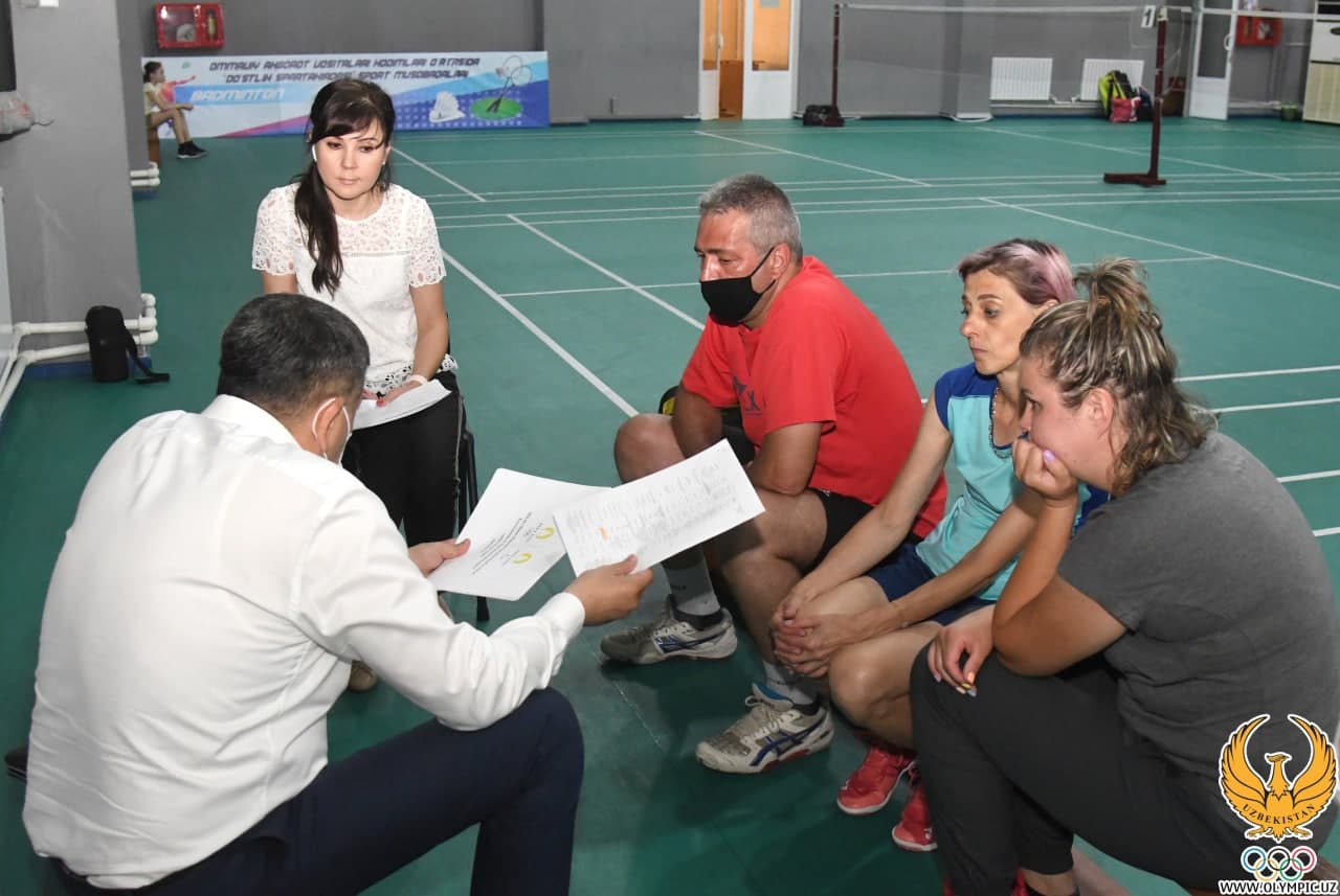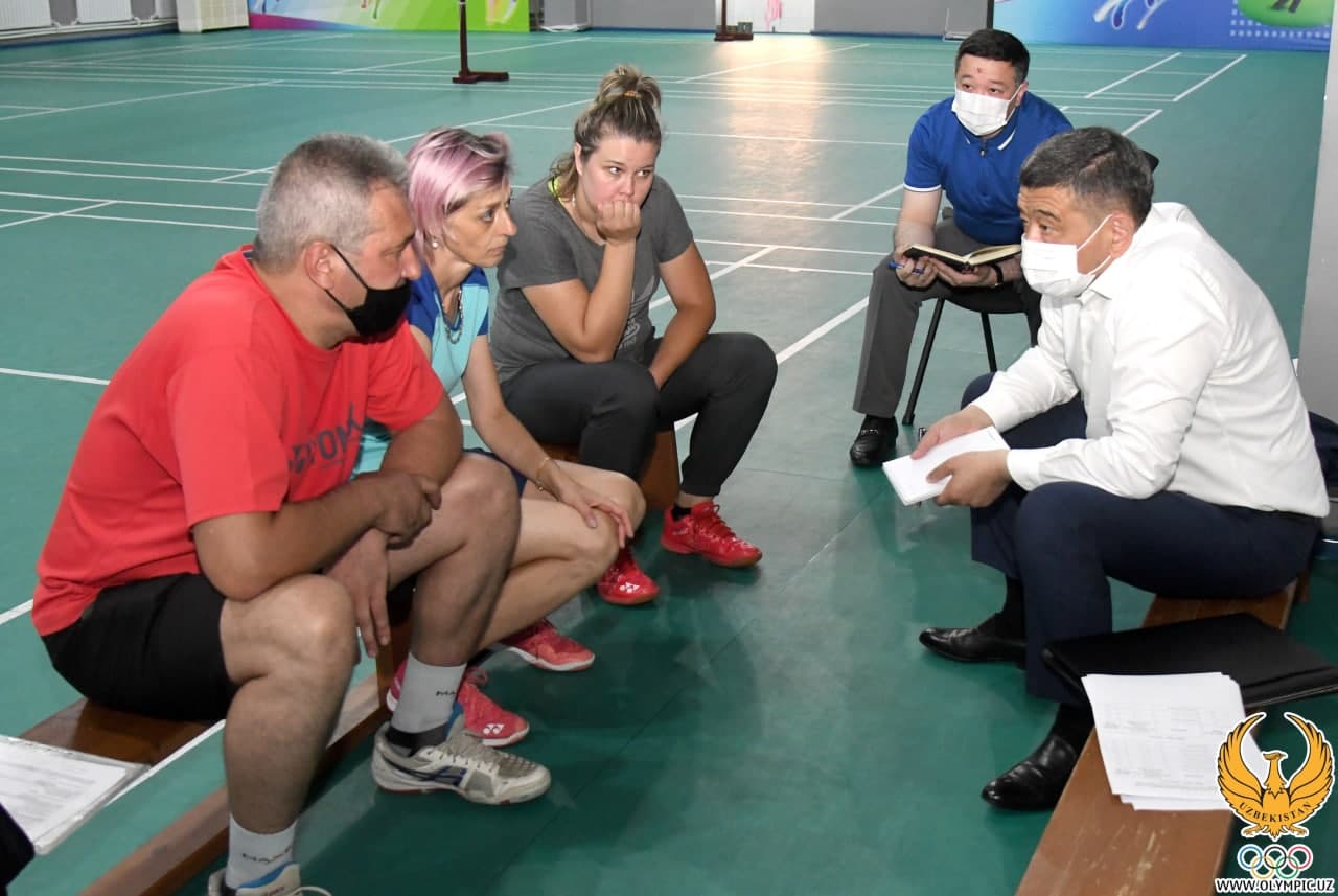 The heads of the National Olympic Committee of Uzbekistan continue to consider plans for the preparation of federations and associations in Olympic sports for the Asian Games Hangzhou-2022 and the Olympic Games Paris-2024. Today, the chairman of the NOC, Rustam Shaabdurakhmanov, reviewed the preparation plans of the Badminton Federation of Uzbekistan. The head of the NOC was met by the General Secretary of the Federation Onazhon Zhumaniyazova. Three coaches and representatives of the NOC were also present during the conversation.