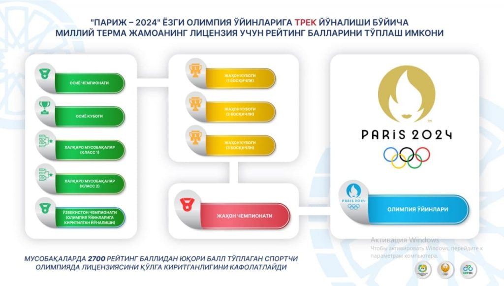 Сегодня в НОК вместе с опытным зарубежным специалистом Глебом Гройсманом, которого планируется привлечь в состав сборной, обсуждались планы подготовки к Азиатским играм Ханчжоу-2022 и Олимпийским играм Париж-2024. В мероприятии приняли участие председатель НОК Рустам Шаабдурахманов, его заместитель Шерзод Ташматов, Генеральный секретарь федерации велосипедного спорта Козим Уринбойхужаев.