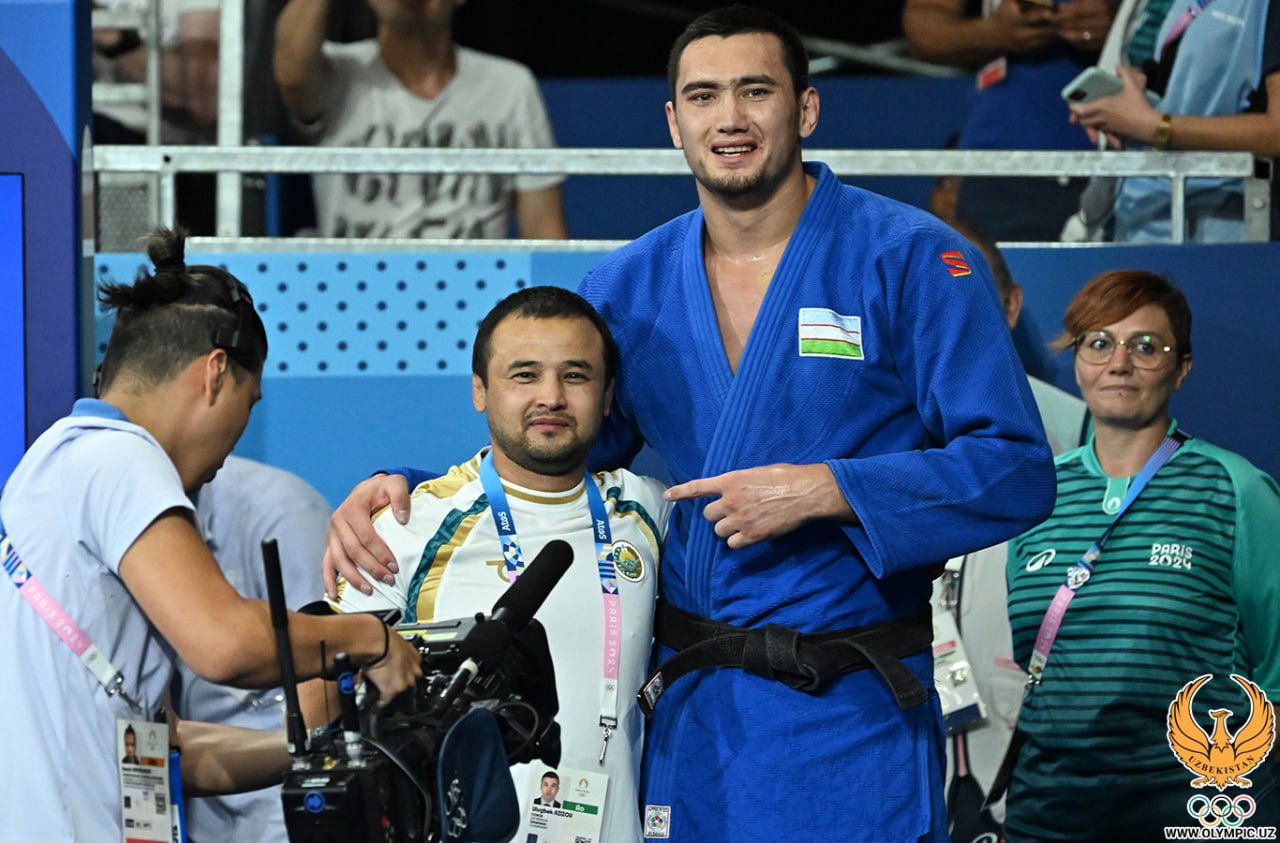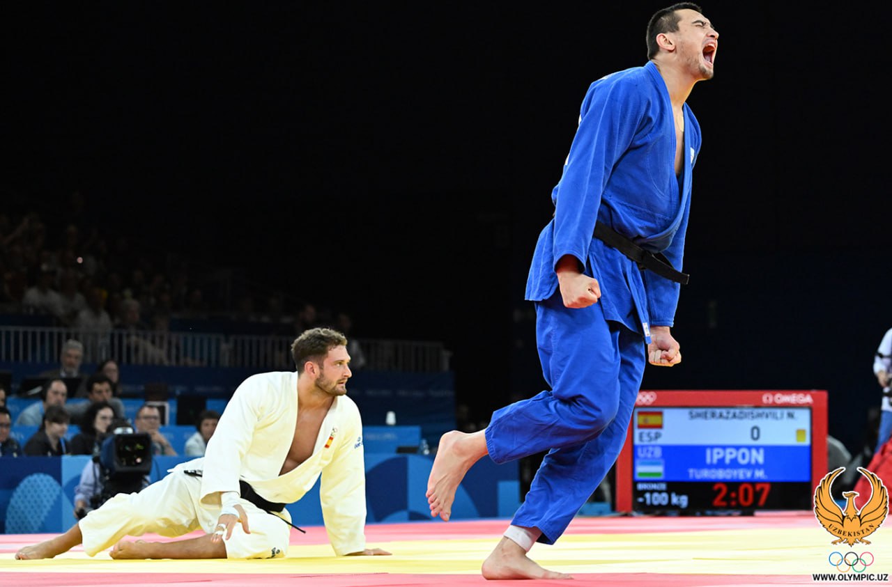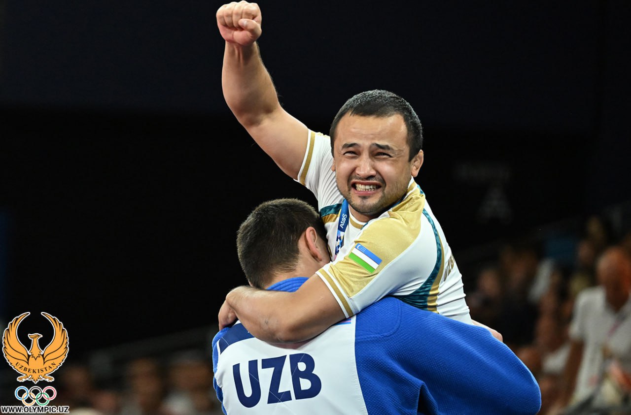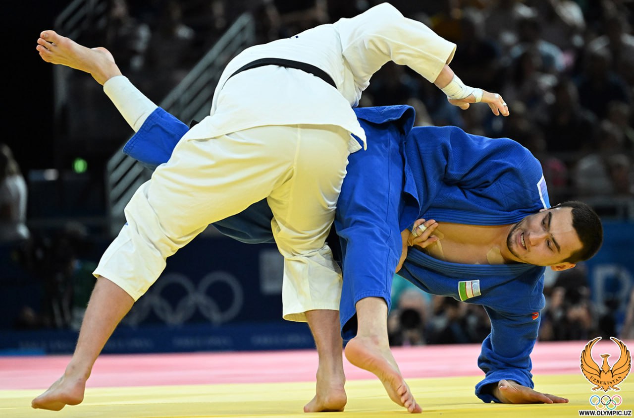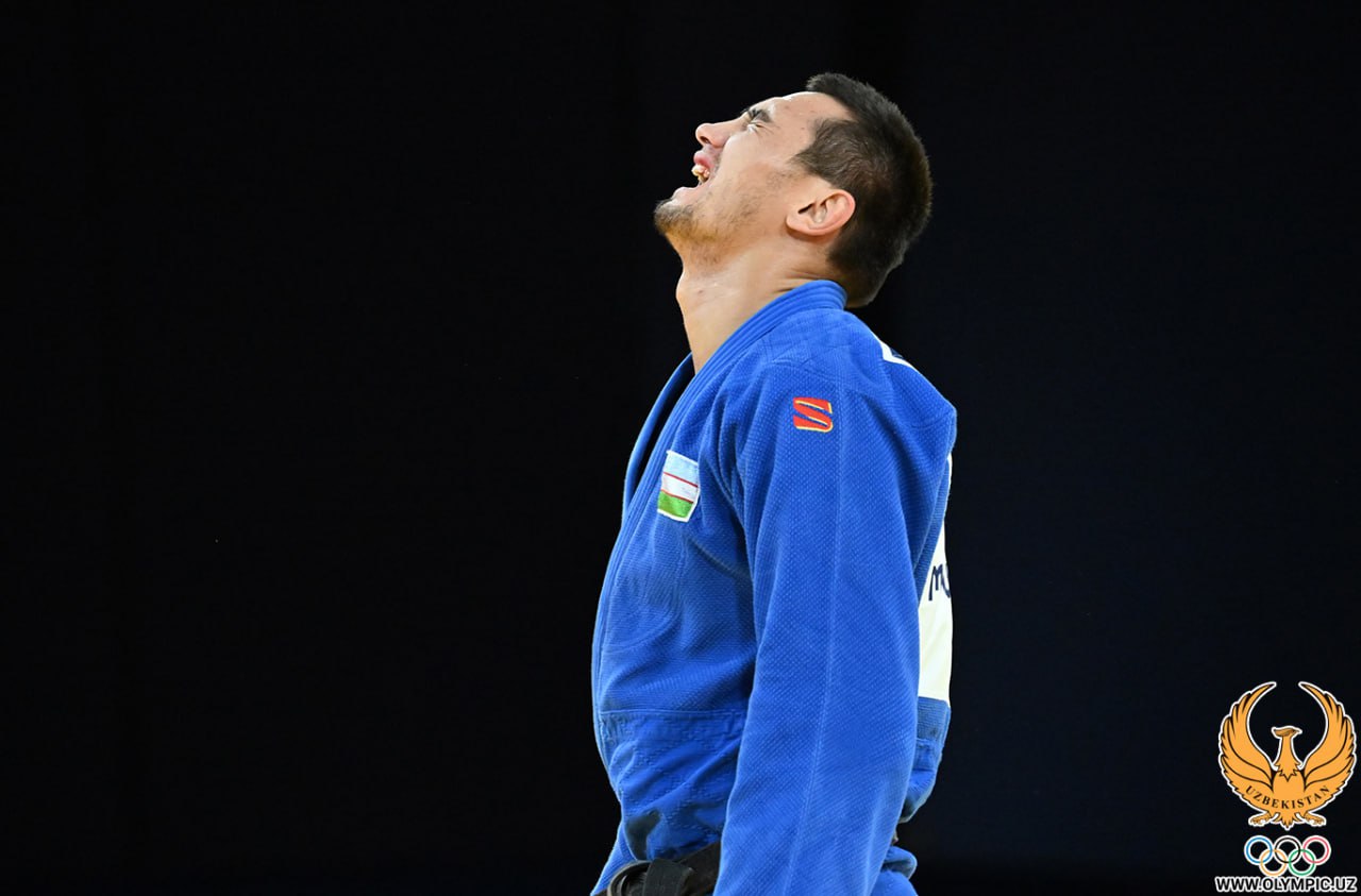 Muzaffarbek To’raboyevning O’zbekiston delegatsiyasiga ikkinchi medalni taqdim qilgan bahsidan yorqin suratlar