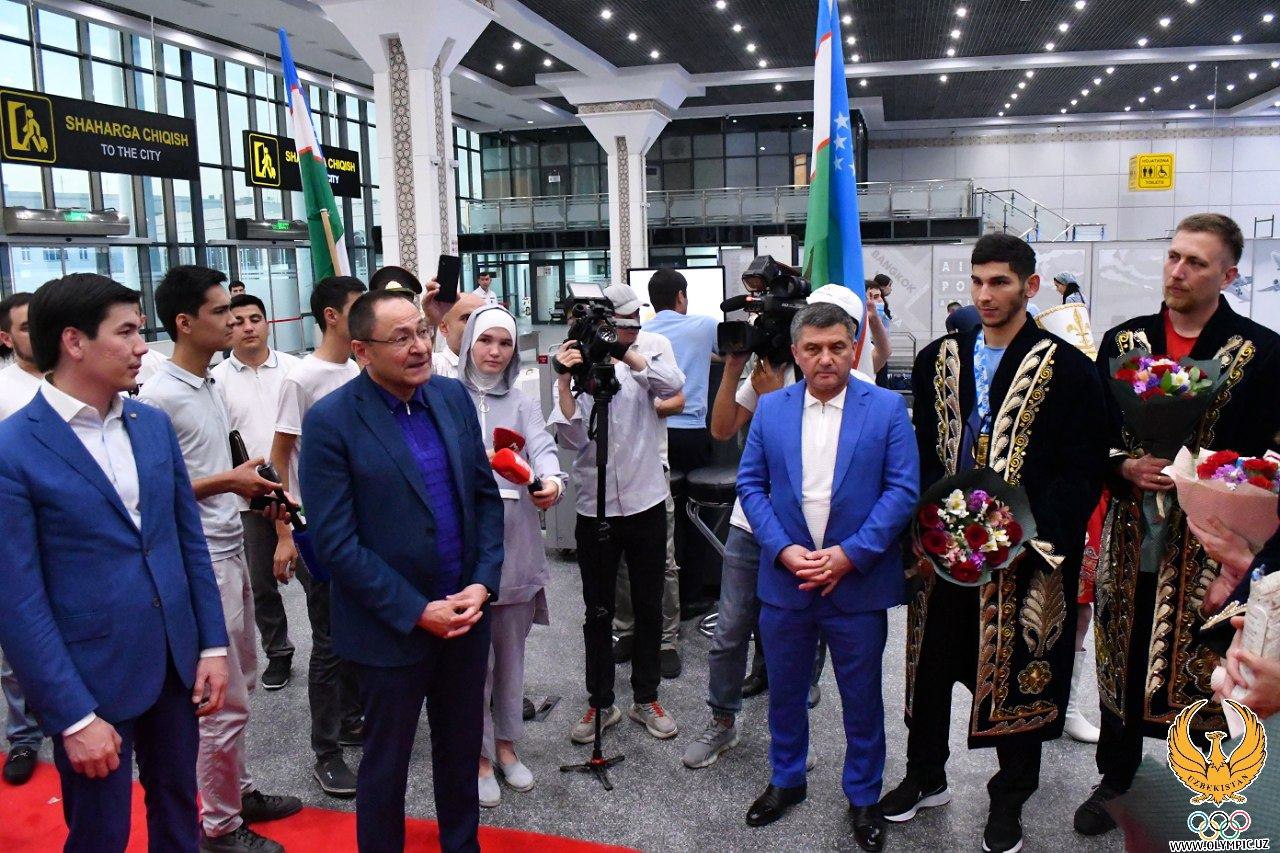 Islom Karimov nomidagi Toshkent xalqaro aeroportida oʻtgan tantanali tadbirda Sportni rivojlantirish vaziri Adham Ikramov va uning oʻrinbosari Shahrullo Mahmudov, MOQ Bosh kotibi Oybek Kasimov, Mudofaa vazirligi mutasaddilari, sportchilarimizning yaqinlari va koʻplab OAV xodimlari ishtirok etishdi.