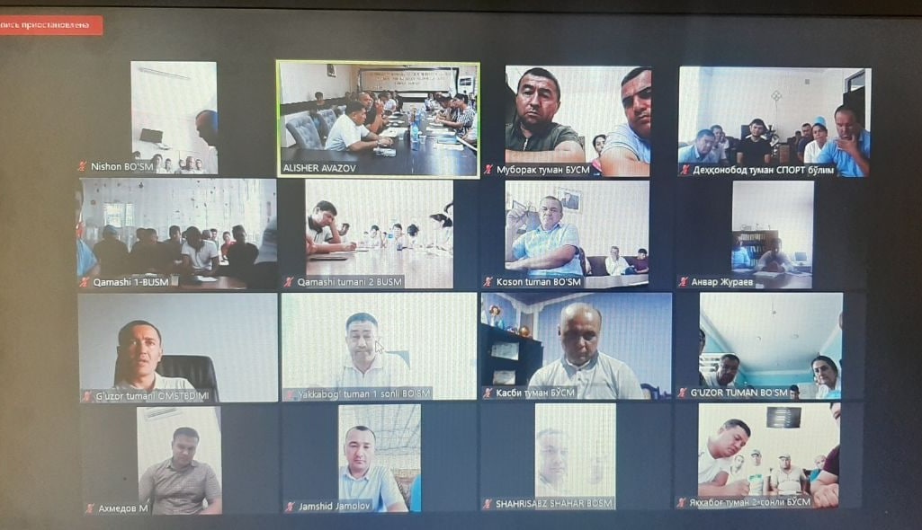 Tashrif yakunida viloyatdagi barcha sport taʼlim muassasasi rahbarlari va tuman boʻlim boshliqlari ishtirokida ZOOM platformasi orqali onlayn yigʻilish oʻtkazilib, oldinda turgan muammo va kamchiliklarni bartaraf etish boʻyicha masʼullarga kerakli topshiriqlar berildi.