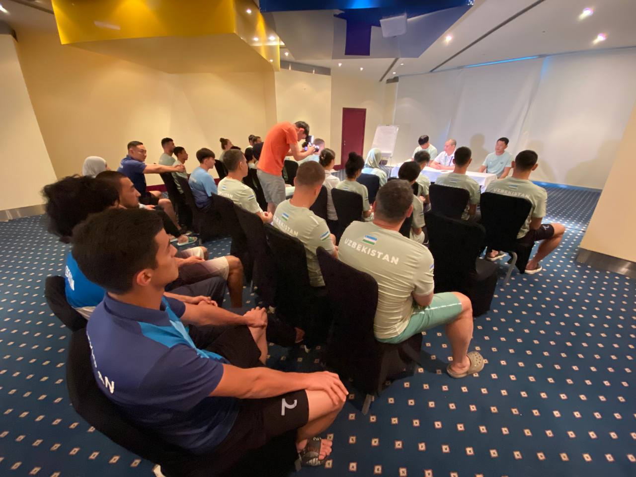 Dastlab taekvondo bo‘yicha sportchi va murabbiylar shtabi bilan yig‘ilish o‘tkazildi. Unda Sherzod Rixsibayevich har bir jamoa vakili bilan birma bir suhbatlashib, ularning musobaqaga olib borgan tayyorgarligi bilan tanishdi. So‘z o‘rnida bo‘lajak u Islom birdamligi o‘yinlarining ahamiyati, oldinga qo‘yilgan vazifalar xususida to‘xtalib, barchadan bellashuvlar davomida bor kuch va imkoniyatlarini ishga solishlarini so‘radi. Shuningdek, musobaqaga tayyorgarlik ko‘rish uchun davlatimiz tomonidan yaratib berilgan sharoitlar haqida to‘xtalar ekan, bunga munosib ravishda yurtimizga chiroyli g‘alabalar bilan qaytish zarurligini ta’kidladi.