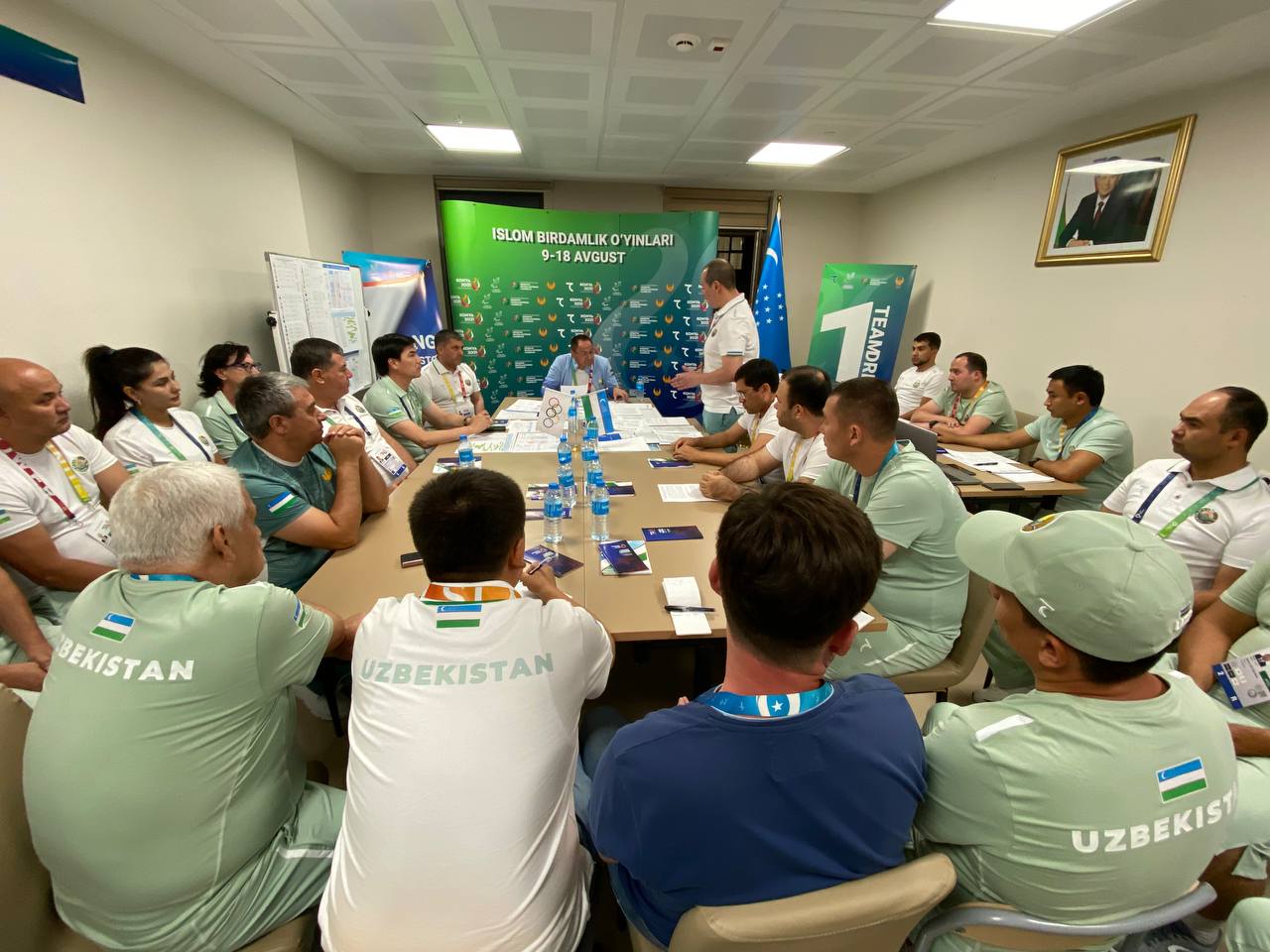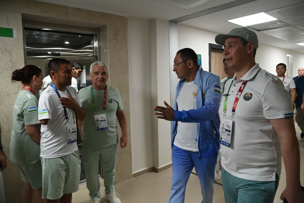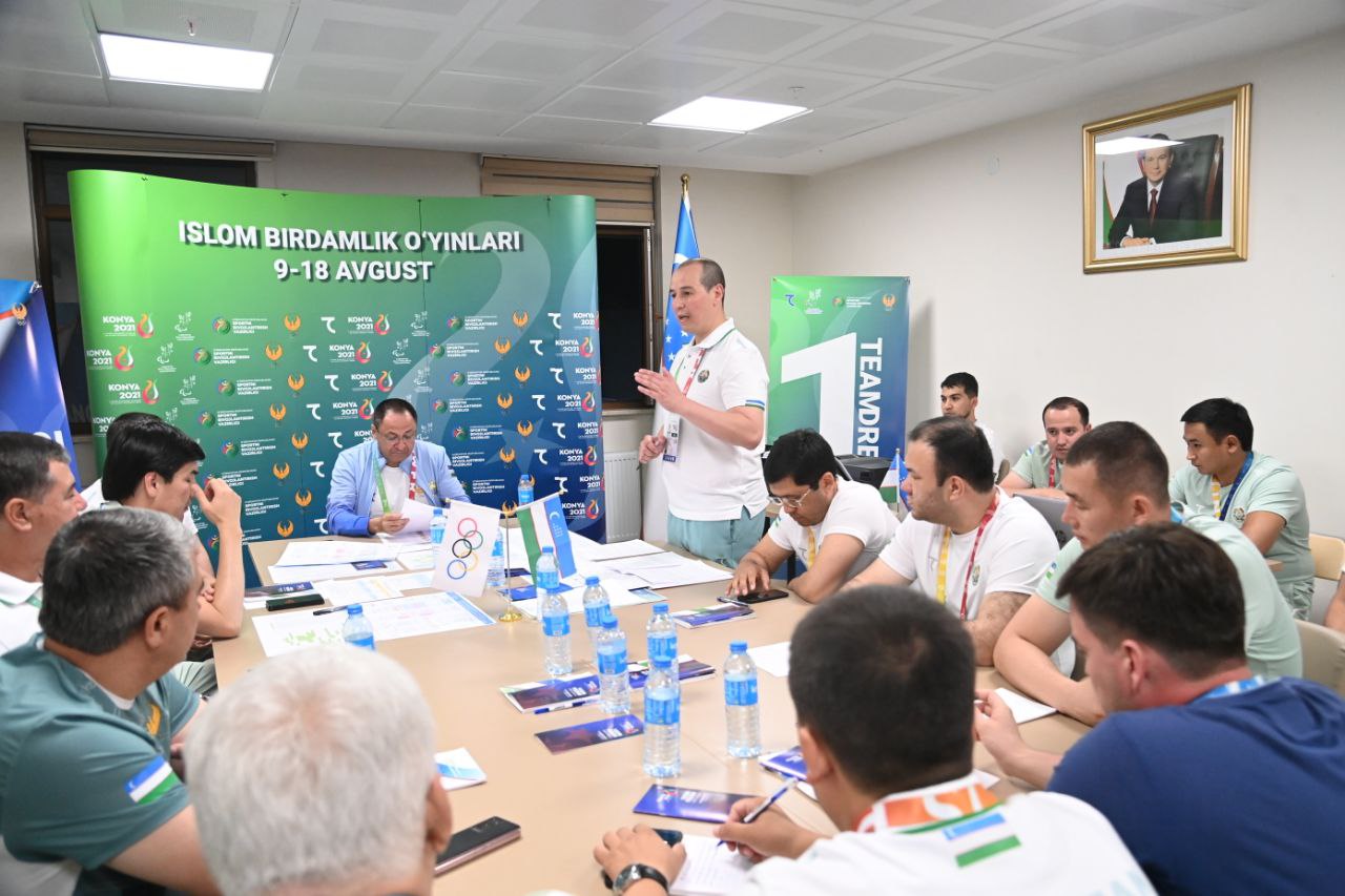 Shundan so‘ng shtab vakillari bilan yig‘ilish o‘tkazildi. Unda MOQ raisi o‘rinbosari Sherzod Tashmatov delegatsiyamizning faoliyati, sportchilarimizning ishtiroki, shtabda yo‘lga qo‘yilgan ishlar haqida batafsil ma’lumot berdi. Adham Ikramov shtabda barcha yo‘nalishdagi mas’ullar bilan alohida gaplashar ekan, jamoamiz erishadigan muvaffaqiyat hammaning o‘z ishini puxta bajarishi ortidan kelishini ta’kidladi. Qolaversa, har bir terma jamoa murabbiylari bilan atletlarimizning holati va kutilayotgan natijalar xususida birma bir gaplashib chiqdi.