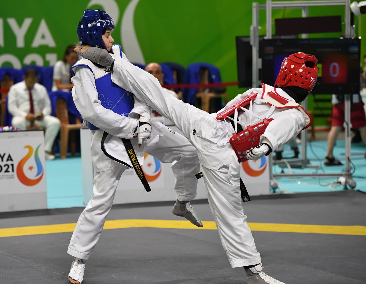 Charos Qayumova (-53 kg) ilk bellashuvni albaniyalik raqibasiga qarshi oʻtkazib, ishonchli gʻalabaga erishdi. Afsuski, Doniyor Mahkamov (-58 kg) murosasiz bellashuvda qozogʻistonlik raqibidan magʻlubiyatga uchradi. Taekvondo bellashuvlarini Sportni rivojlantirish vaziri Adham Ikramov, MOQ Bosh kotibi Oybek Kasimov, Qoʻmita raisi oʻrin oʻrinbosari, Oʻzbekiston taekvondo assotsiatsiyasi raisi Sherzod Tashmatov bevosita arenadan kuzatib borishmoqda.