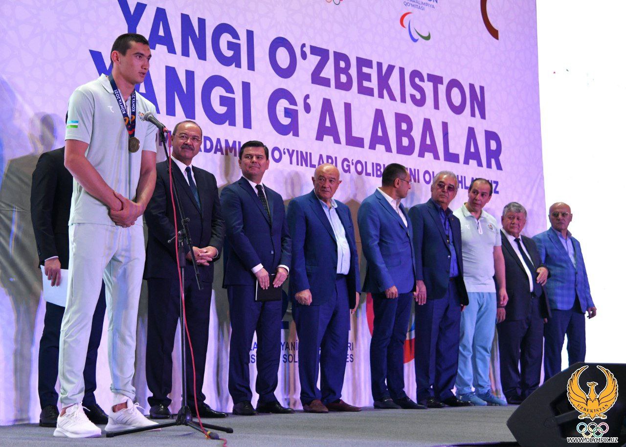 Tadbirda avvalida Sherzod Asadov Prezident Shavkat Mirziyoyevning muzaffar sportchilarimizga yo‘llagan tabrigini, shuningdek, "Konya shahrida (Turkiya) bo‘lib o‘tgan V Islom birdamligi o‘yinlarida g‘olib va sovrindor bo‘lgan sportchilar hamda ularning trenerlarini bir martalik pul mukofotlari bilan rag‘batlantirish to‘g‘risida"gi Prezident qarorini o‘qib eshittirdi. Shundan so‘ng Abdulla Aripov so‘z olib, O‘zbekiston delegatsiyasining ortda qolgan musobaqada erishgan muvaffaqiyati bilan qutladi va o‘zbek sporti Parij-2024 yozgi Olimpiya o‘yinlariga tayyorgarlik borasida to‘g‘ri yo‘ldan ketayotganini alohida ta’kidladi.