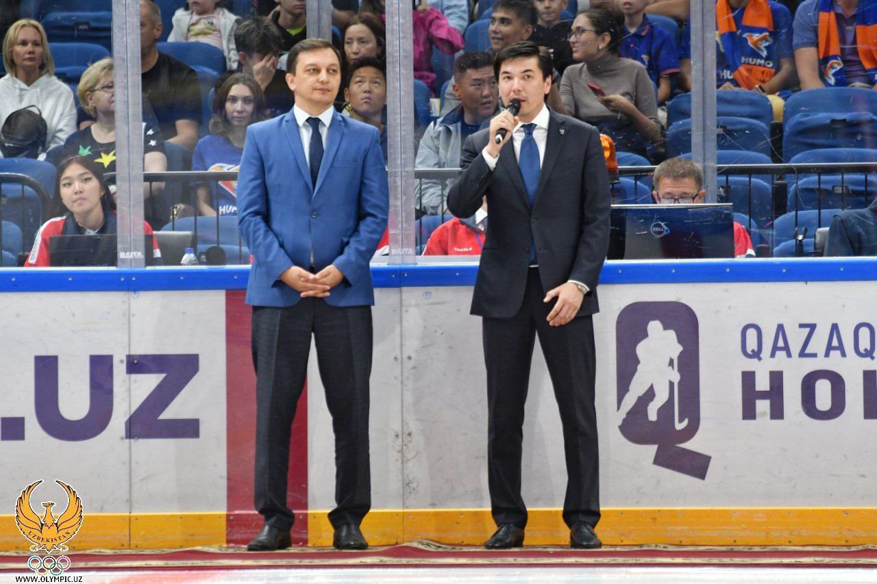 Oʻyin avvalida oʻtkazilgan tantanali ochilish marosimida Sportni rivojlantirish vazirining oʻrinbosari Abdulla Aslanov, MOQ Bosh kotibi Oybek Kasimov soʻz olib, barcha xokkey ixlosmandlarini yangi mavsum boshlangani bilan qutlashdi.