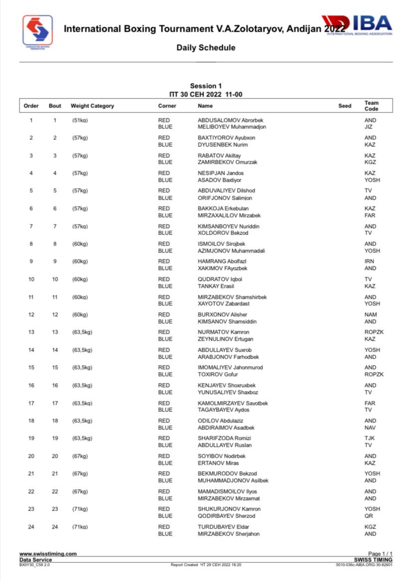 Bugun Andijonda boks boʻyicha V.A.Zolotaryov xotirasiga bagʻishlangan xalqaro musobaqa start oladi. Unda hamyurtlarimizdan tashqari Qozogʻiston, Eron, Qirgʻiziston va Tojikistondan 120 nafardan ortiq charm qoʻlqop ustalari gʻoliblik uchun bahs olib boradi.