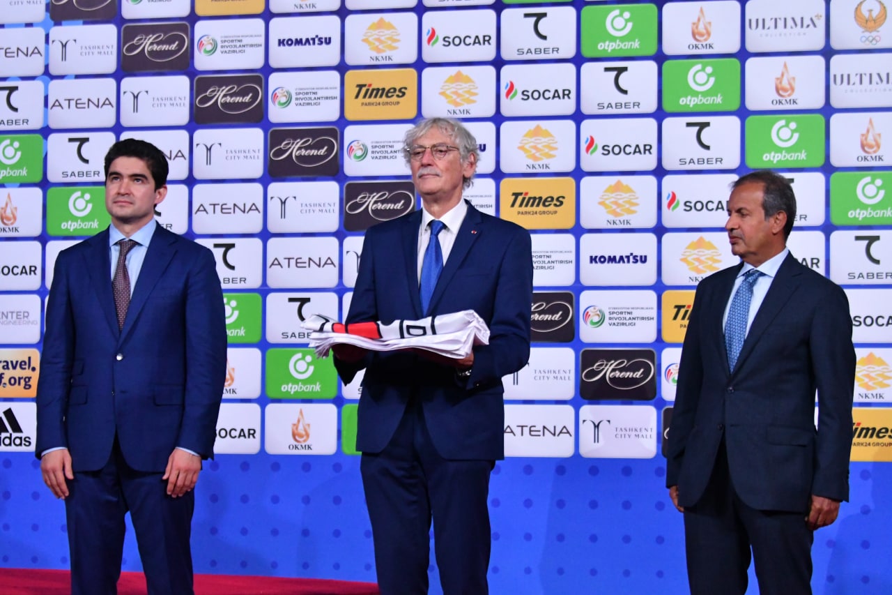 Tadbir avvalida Toshkentda o‘tgan musobaqaning unutilmas onlariga bag‘ishlangan rolik namoyish qilindi. Shundan so‘ng IJF bayrog‘i tushirilib, uni Azizjon Kamilov ramziy ma’noda janob Rujega, Xalqaro dzyudo federatsiyasi Bosh kotibi esa bayroqni kelgusi dunyo birinchiligi mezbonlarining rasmiy vakiliga topshirdi.
