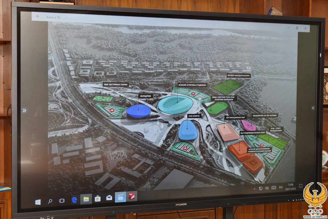 Dastavval, xitoylik muhandislar loyiha haqida batafsil maʼlumot berishdi. Olimpiya shaharchasida barpo etiladigan har bir obyekt, uning parametrlari, qanday xom-ashyolardan qurilishi haqida toʻxtalib oʻtishdi. Shundan soʻng Adham Ikramov loyiha haqida qoʻshimcha maʼlumot berdi.