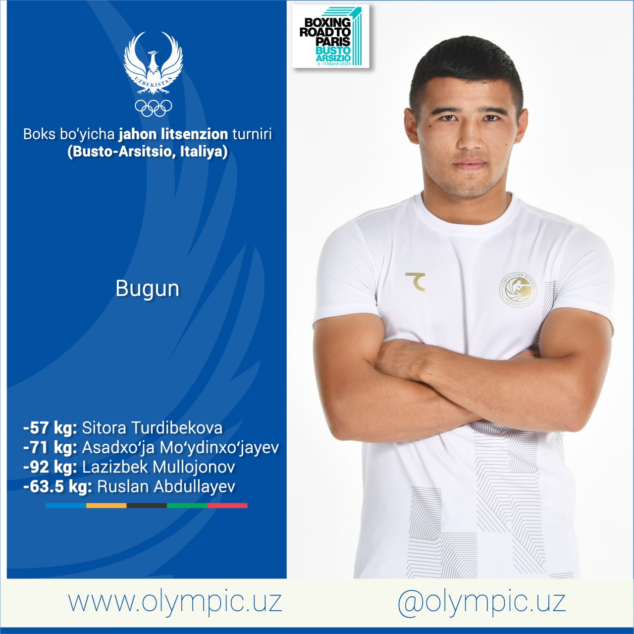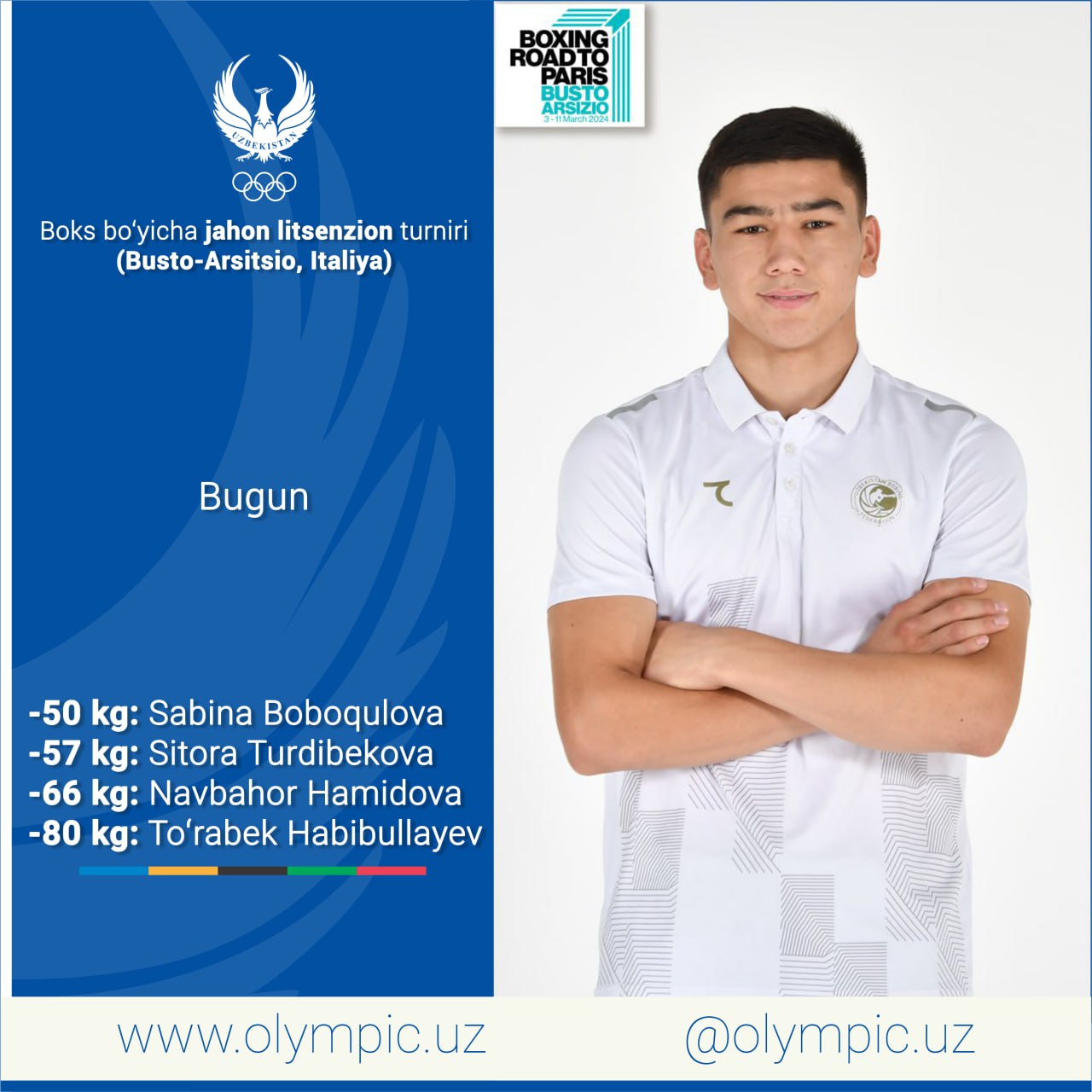 Italiyada boks boʻyicha Parij-2024 jahon litsenzion turniri qizgʻin davom etmoqda. Bugun Oʻzbekiston...