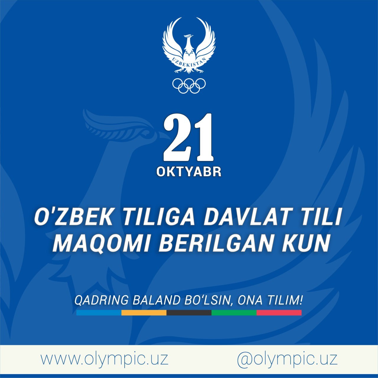 Bugun 21-oktyabr – oʻzbek tiliga davlat tili maqomi berilgan kunga 34 yil toʻldi. 1989-yilning aynan...