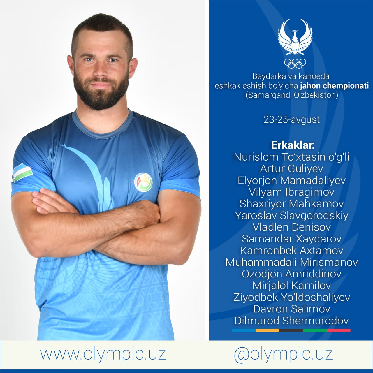 Xabaringiz bor, 23-25-avgust kunlari Samarqandda baydarka va kanoeda eshkak eshish bo‘yicha jahon ch...