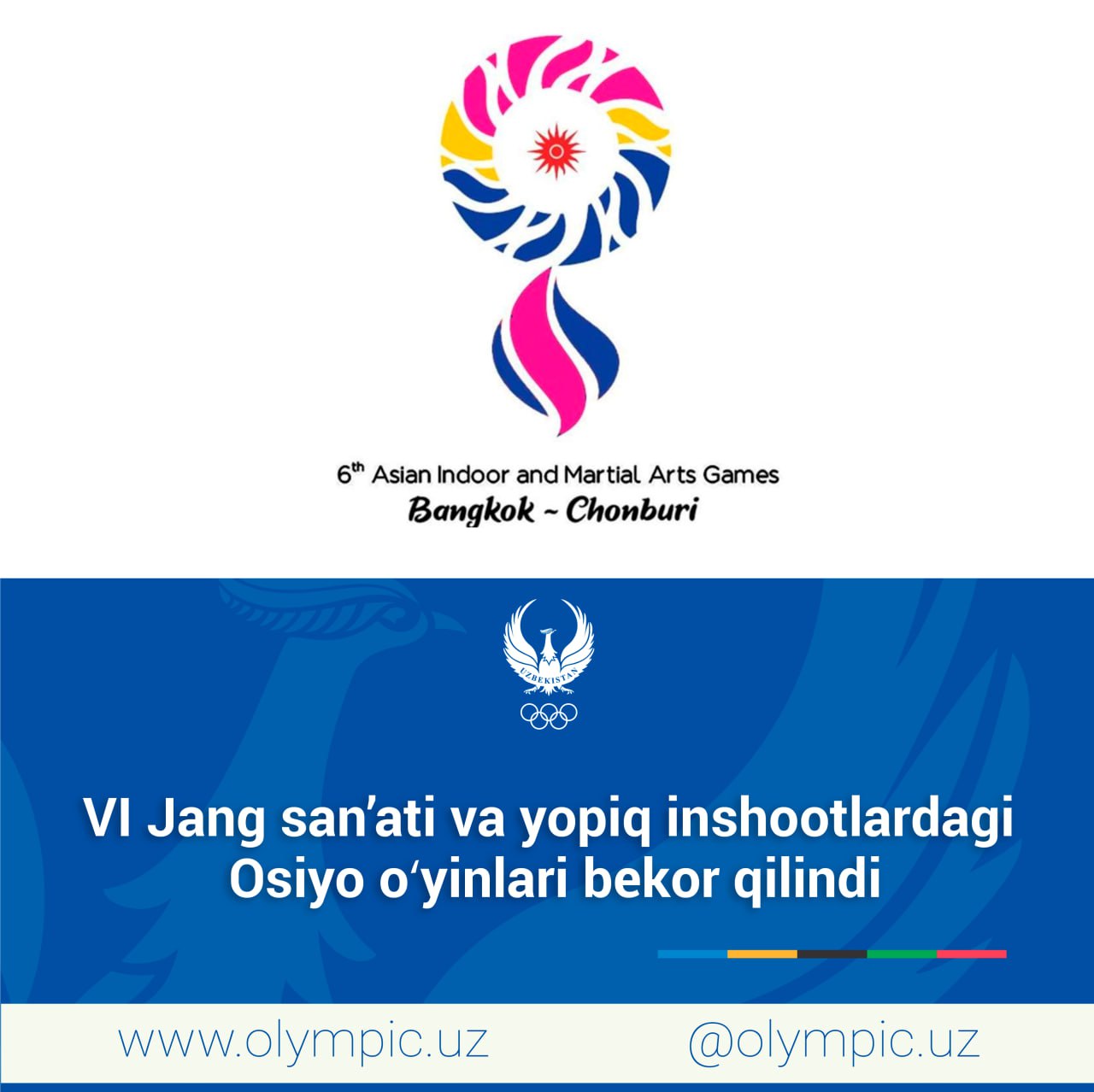 Joriy yilning 21-30-noyabr kunlari Tailandning Bangkok va Chonburi shaharlarida VI Jang san’ati va y...