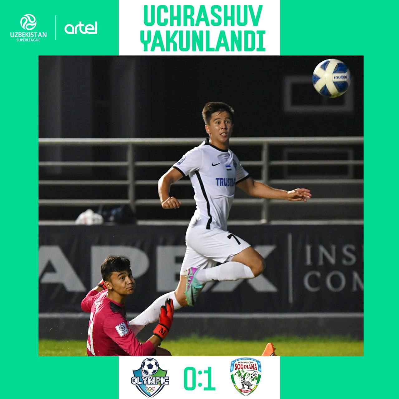 Superliga. 16-tur Olimpik 0 – 1 So'g'diyona V.Yovovich 64’ Afsuski, bu tur futbolchi...
