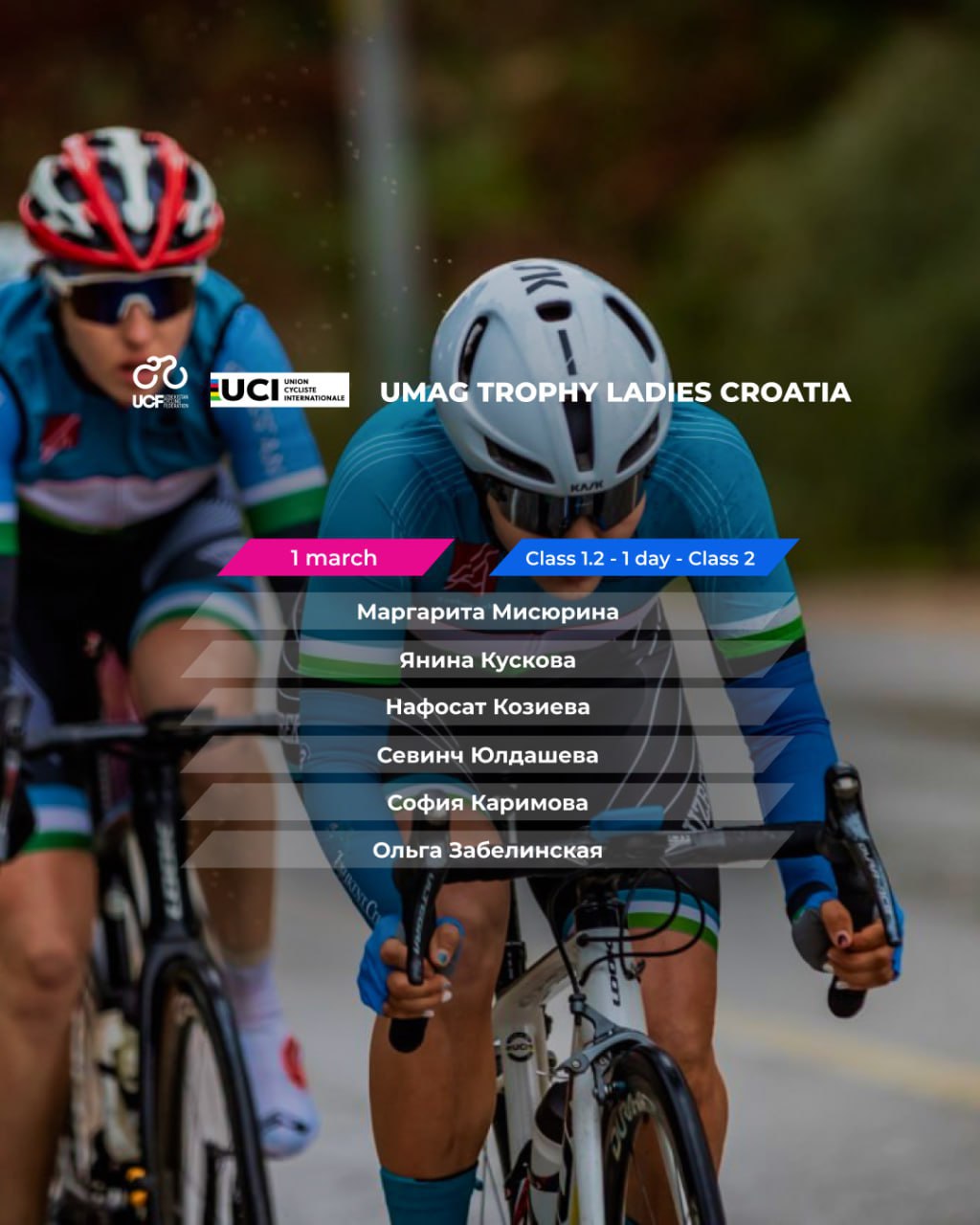 Velosportning shosse yoʻnalishi boʻyicha Oʻzbekiston ayollar terma jamoasining asosini tashkil etuvc...