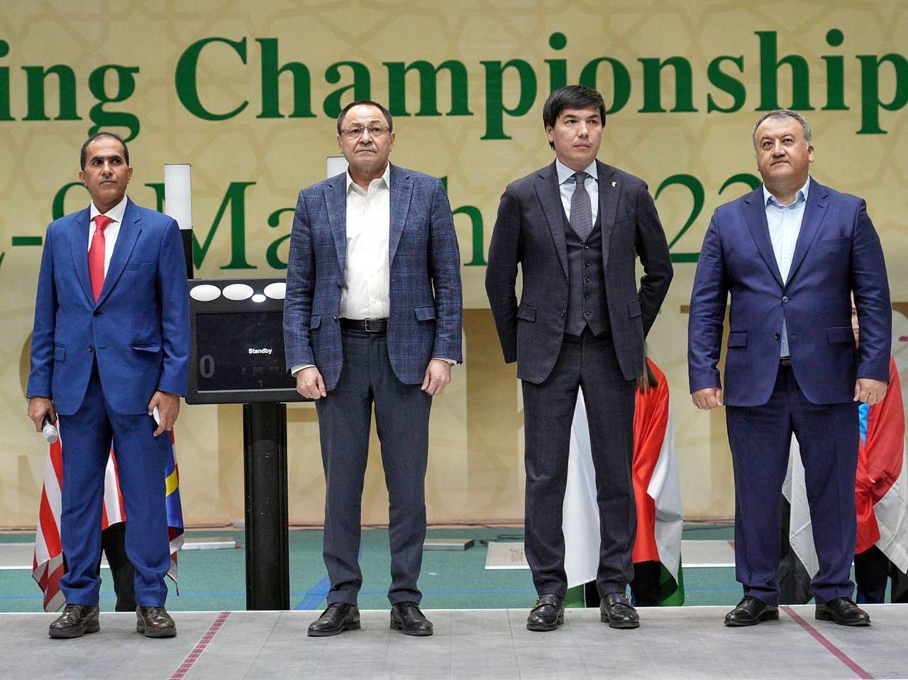 Также сегодня состоялась официальная церемония открытия соревнований. В мероприятии приняли участие президент Азиатской конфедерации фехтования Шейх Салим Косими, министр Молодёжной политики и спорта Республики Узбекистан Адхам Икрамов, Генеральный секретарь НОК Ойбек Касимов, председатель Федерации фехтования Узбекистана Максуд Абдусаматов.