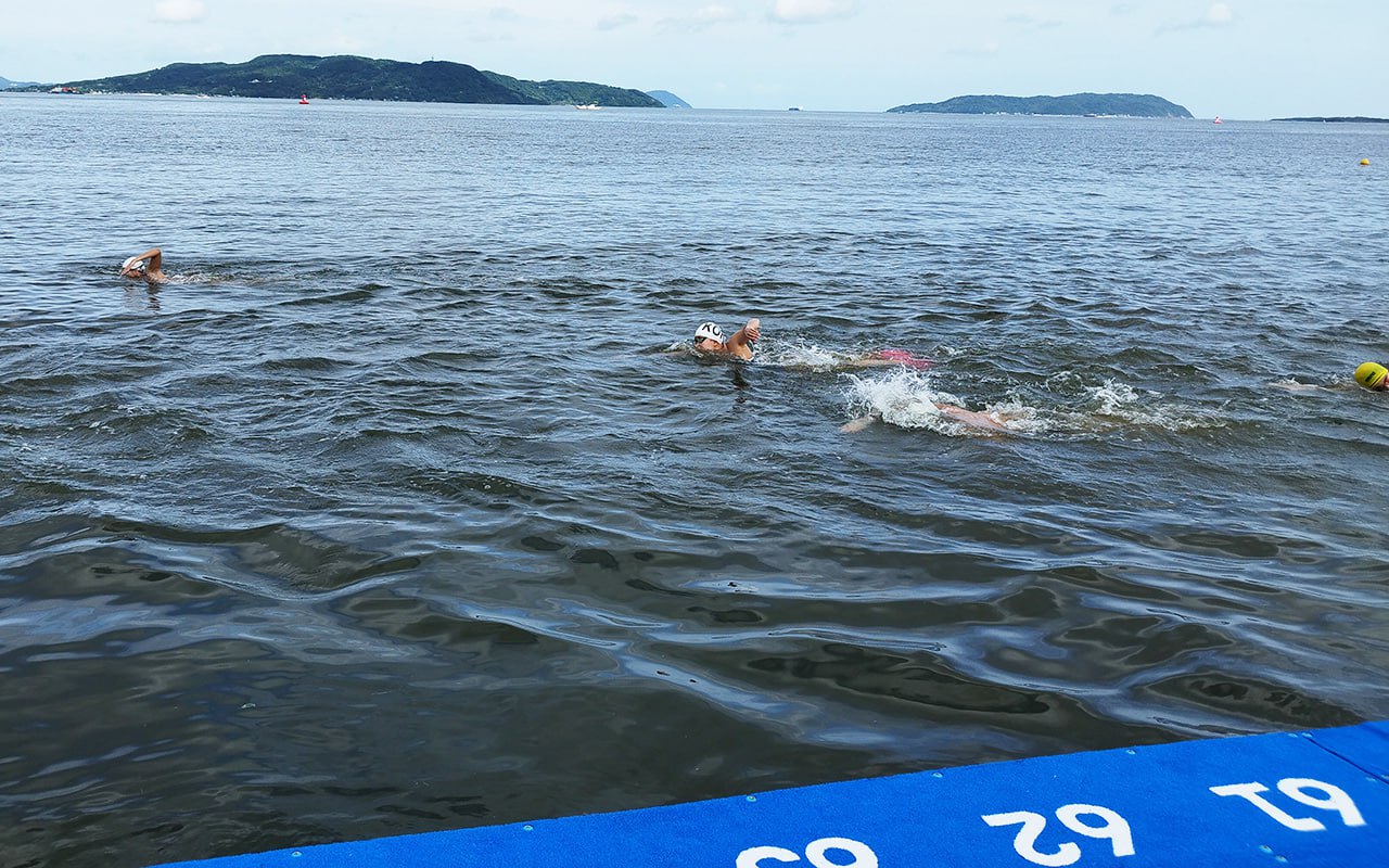 Сначала к тренировкам приступили атлеты, участвующие в соревнованиях по плаванию на открытой воде. Под руководством тренера Саиды Искандаровой спортсмены провели почти два часа в море, где будут проходить сами состязания.
