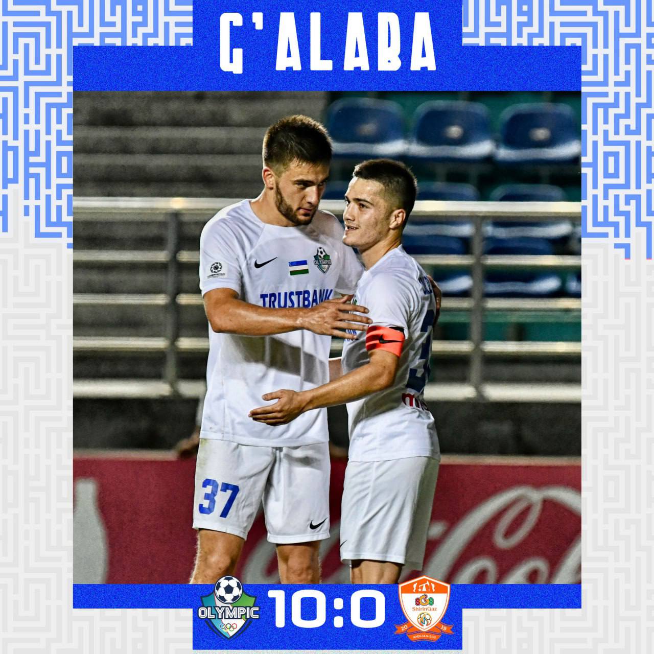 Кубок Узбекистана. 1/8 финала Oлимпик 10 – 0 Андижан SGS Голы: Дж.Джалолиддинов 6, 43, 44, 90 (п...