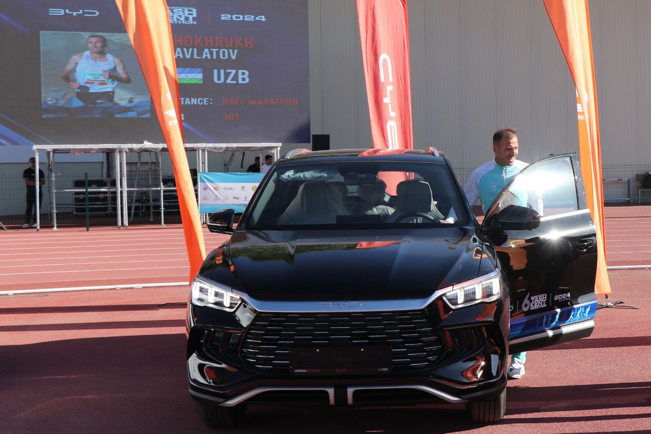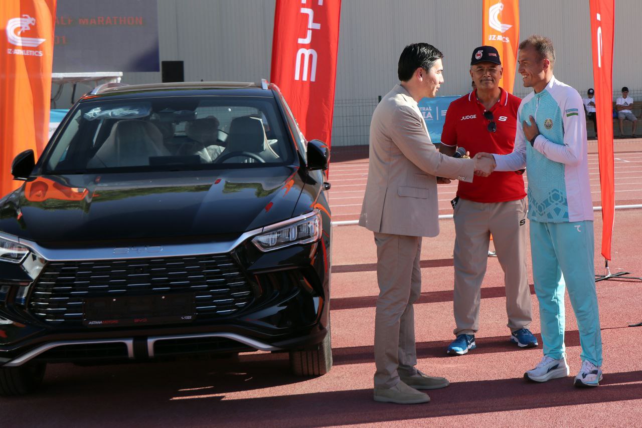 Жорий йилнинг 21 апрель куни пойтахтимиз мезбонлик қилган Тошкент VI халқаро марафонида ҳамюртларимиз Шоҳруҳ Давлатов ва Екатерина Тунгускова бош соврин – BYD машинасини ютиб олишган эди. Бугун Тошкентда ўтаётган енгил атлетика бўйича Ўзбекистон очиқ чемпионатида ҳар икки спортчига совринлари тантанали равишда топширилди.